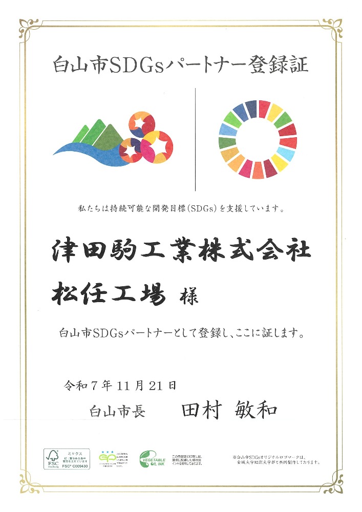 11/21 白山市SDGsキックオフイベントにて田村白山市長より登録証を交付いただきました。