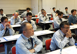 全新入社員に対し、入社後1か月半の集合研修でビジネスマナー、社内規則、社内組織、製品説明などを行います。その後工場実習を経て職場に配属になります。